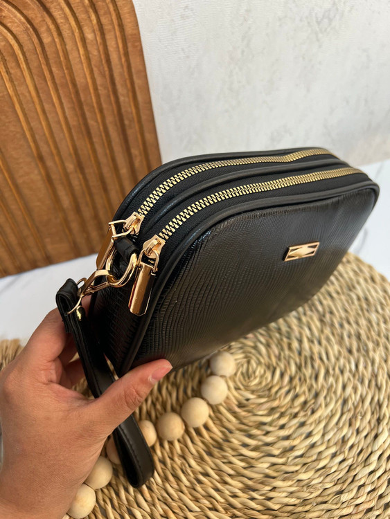 کیف دو زیپ پاسپورتی دارای دو بند مچی و بند بلند دوشی قابل تنظیم