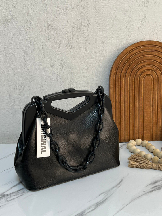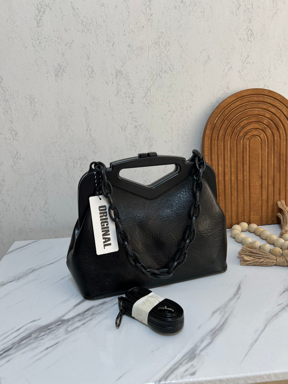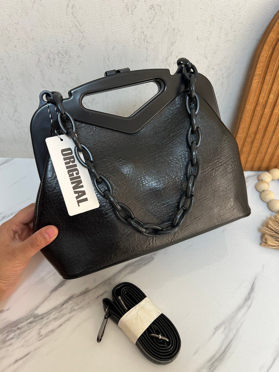 کیف مجلسی مشکی دسته مثلثی با زنجیر مشکی و بند بلند دوشی قابل تنظیم