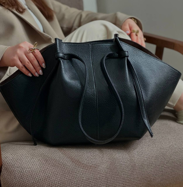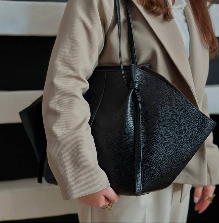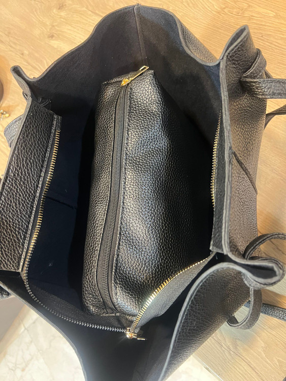 کیف سلیز بزرگ زنانه جنس چرم درجه یک داخلش ی بگ زیپ دار داره و درب کیف با زیپ بسته میشه بندش قابل تنظیمِ از طریق گره ها میتونید سایز بند رو بلند و کوتاه کنید