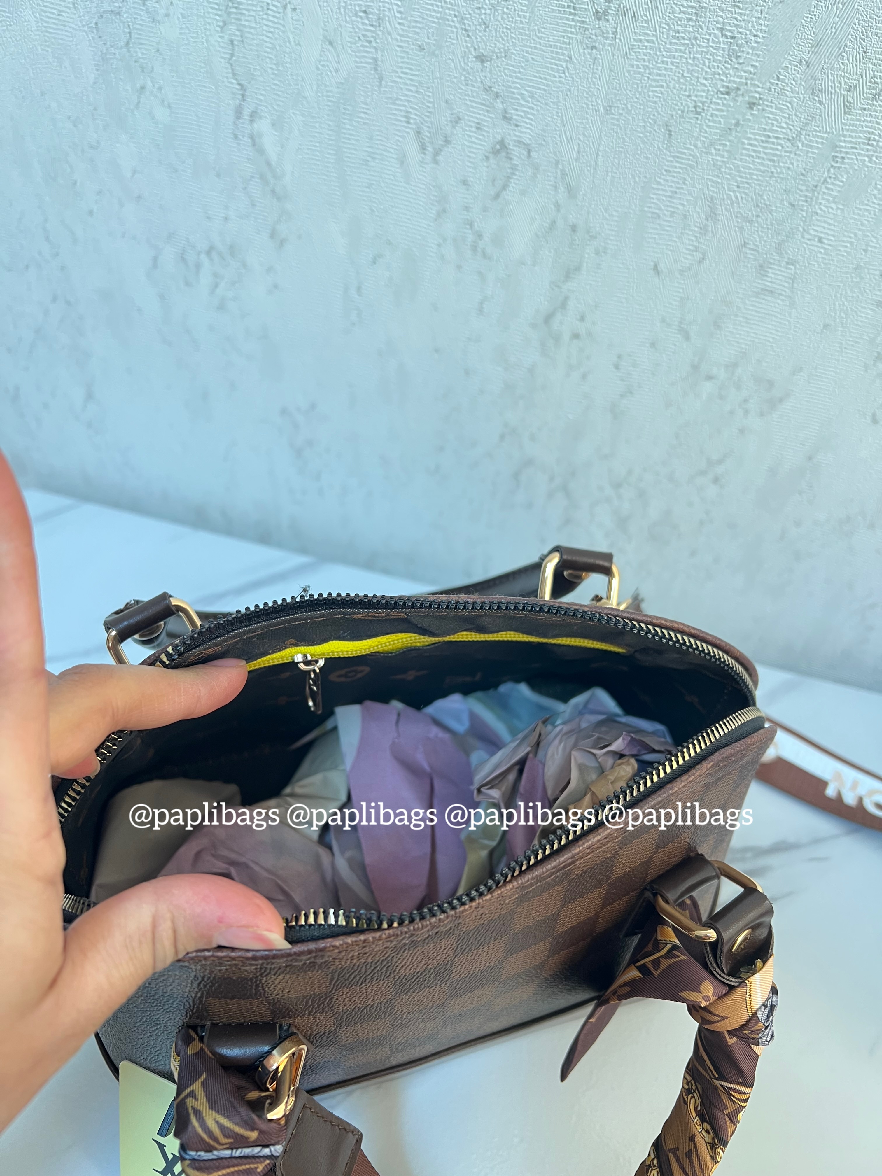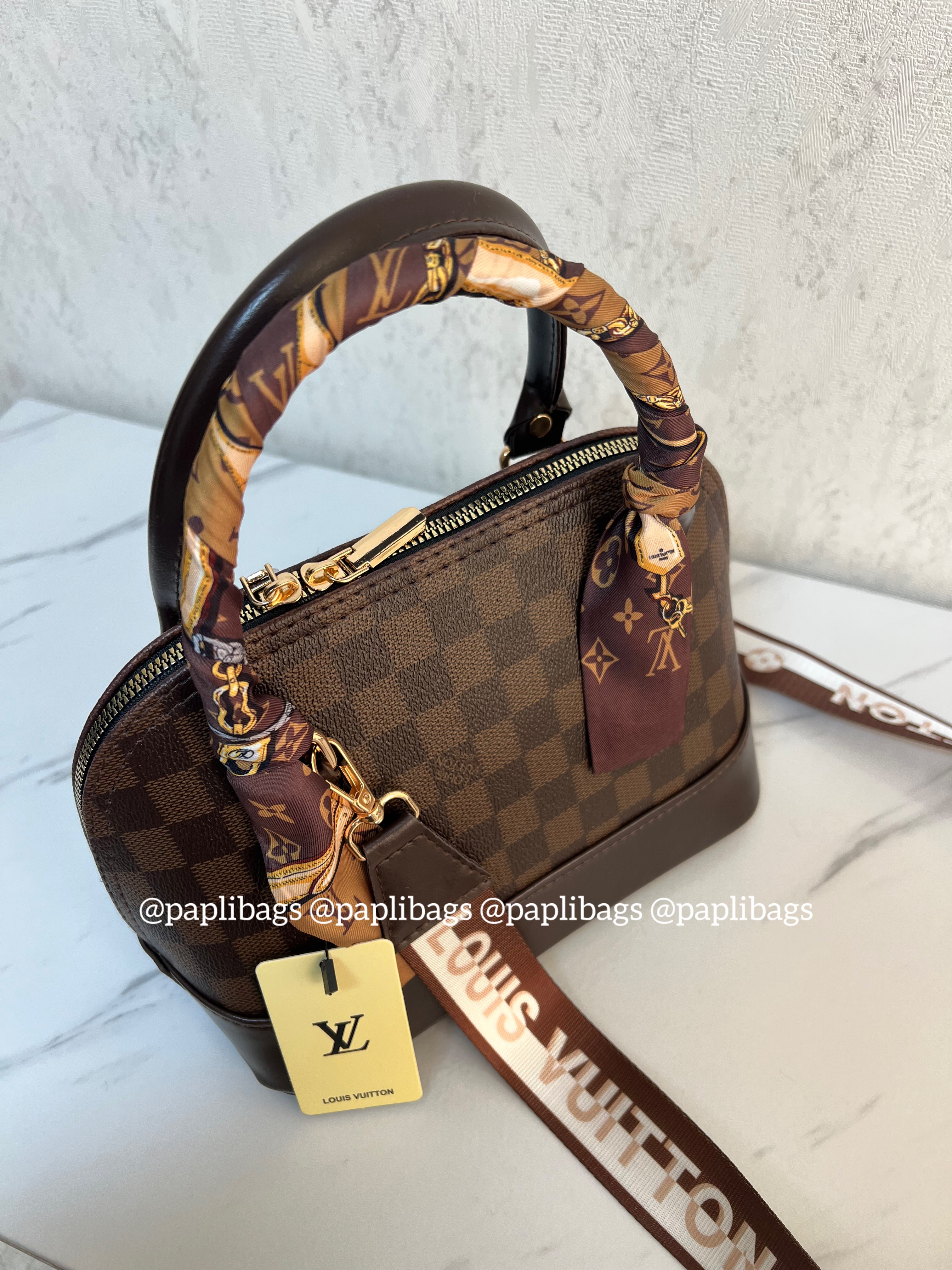 بند دو رنگلویی ویتون اسکارف روی کیف اشانتیون داخل کیف استرلویی ویتون دوخته شده بهترینکیفیت بازار و بسیار شیک و زیبا